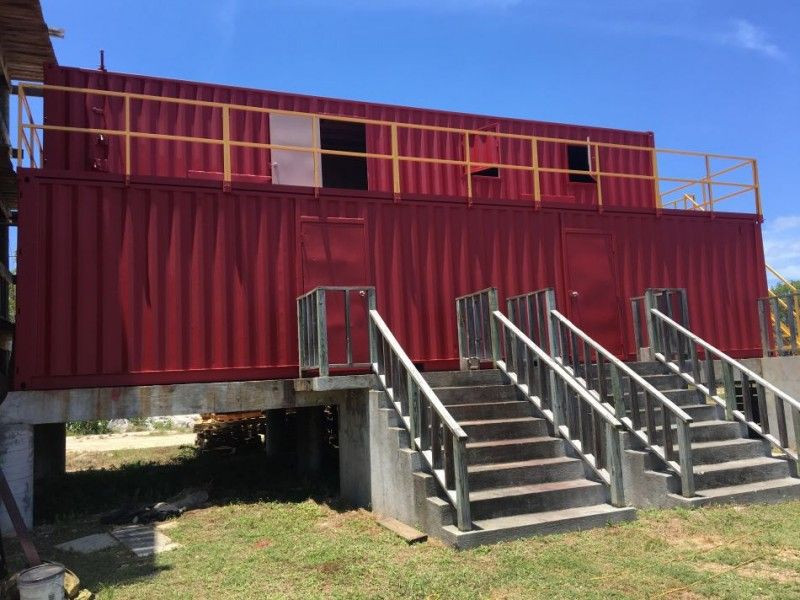 Repaint entire area of shipping containers with a high heat paint good up to 1600 degrees and prime bare new metal with primer.