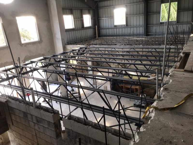 Hoist steel into place in the framework